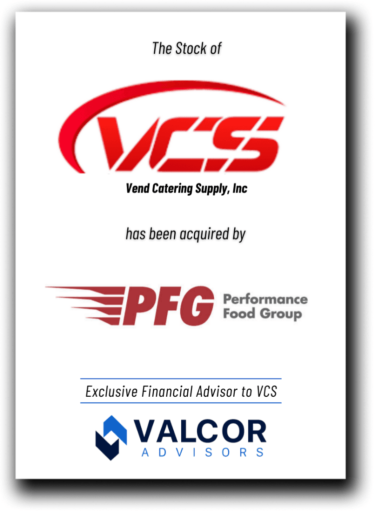 "Working with VALCOR during the sale of Vend Catering to Performance Food Group was an exceptional experience. From start to finish, they demonstrated an in-depth understanding of our business, were highly professional, and provided strategic guidance that was invaluable throughout the process. Their expertise and commitment helped ensure a smooth transition and a successful outcome. I couldn’t be more pleased with how they represented us and would highly recommend their services to any business looking for trusted advisory support."